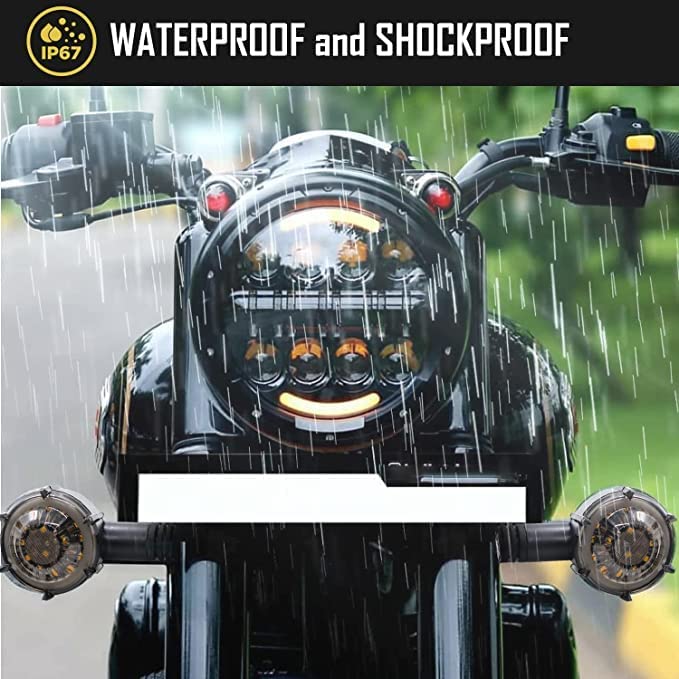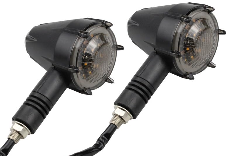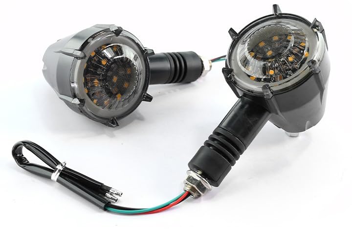 Universal bike LED turn-signal lights designed for all models. Waterproof, flexible rubber body with high-brightness SMD LEDs in amber and blue. Built for low power consumption, easy installation and enhanced visibility.